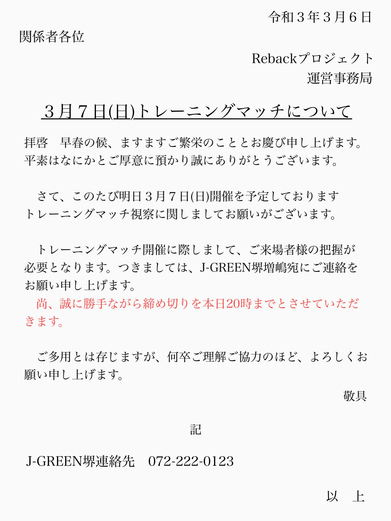 1.大阪でのトレーニングキャンプ(J-GREEN堺を予定)をサポートして頂ける方。