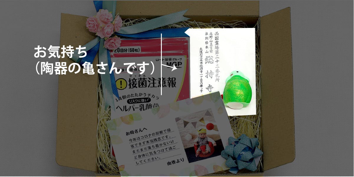 守りたい気持ちを込めて、大切なあの人を守る製品を、私たちが心を込めてお届けすることができないだろうか。そう思い、まるで「飲むお守り」、私たちが開発した「ヘルパー乳酸菌」のサプリメントを特別パッケージの「ギフト」にしようと考えたのです。