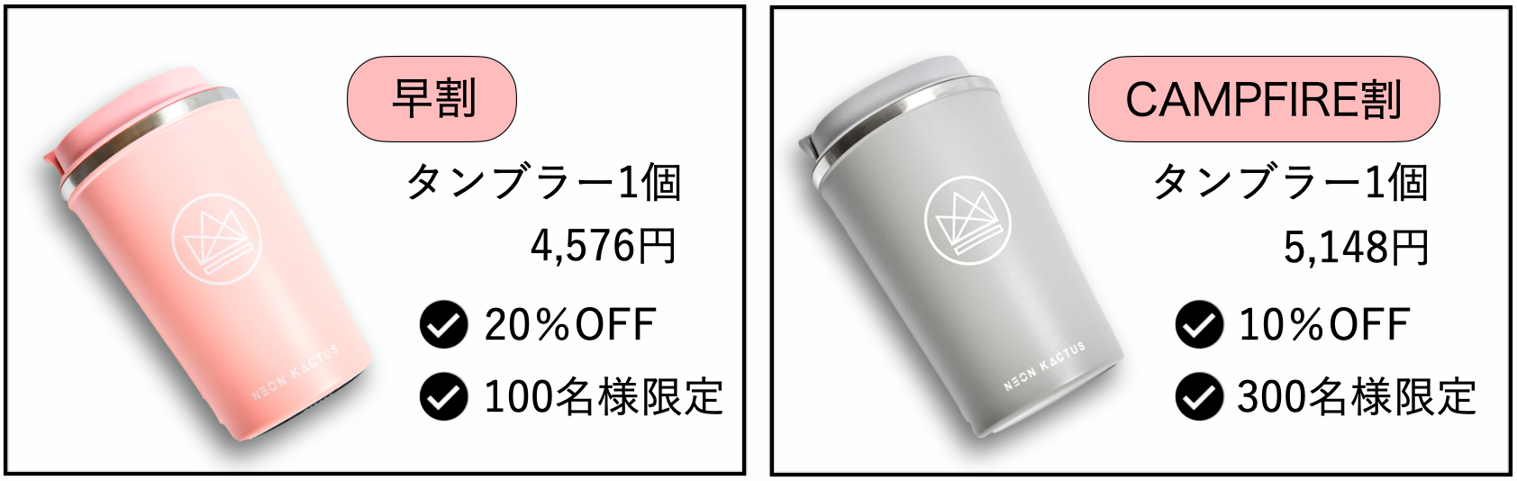 プロジェクトを実行しますNEON KACTUS JAPANです。この度は、本プロジェクトにご興味を持っていただきありがとうございます。リユーザブル製品の使用を広めたく今回のプロジェクトを立ち上げました。レジ袋がエコバッグに変わったように、使い捨てのプラスチックカップからマイタンブラーへ変えることは環境への配慮になります。