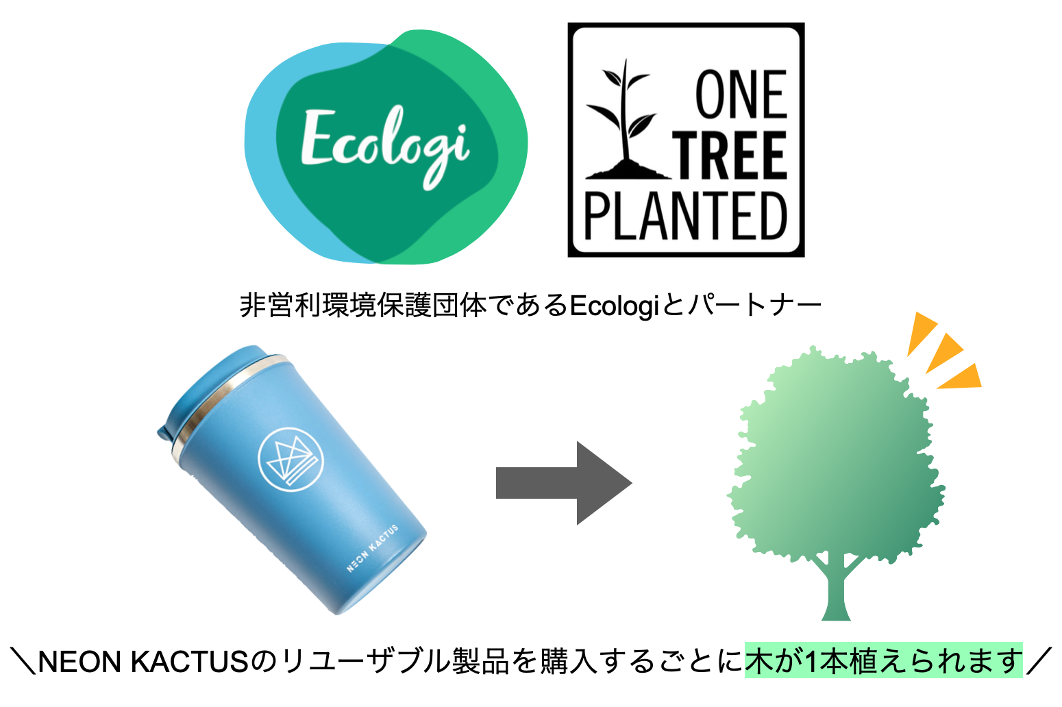NEON KACTUSはリユーザブル製品を作り広めるだけでなく、環境保護団体ともパートナーとなっています。