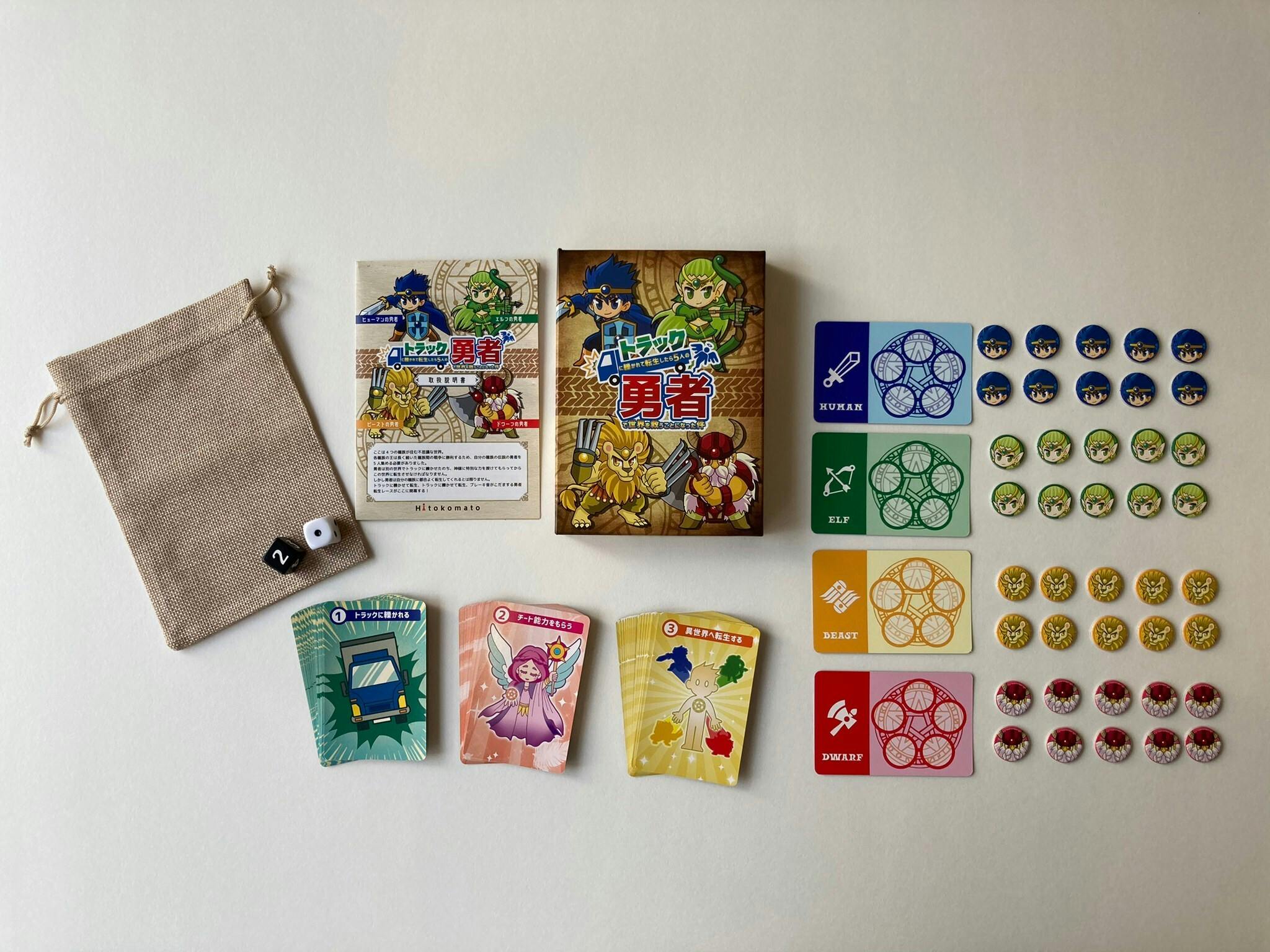 記念すべき初めてのボードゲームは「簡単・楽しい・ワクワクするゲーム」をコンセプトにした『トラックに轢かれて転生したら5人の勇者で世界を救うことになった件』略して『トラック勇者』です。