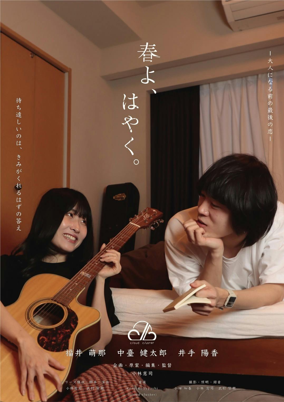 映画「春よ、はやく。」は、人生の岐路をまえに戸惑い、煩悶とするふたりの大学生に焦点を当てた「夢」と「恋」とがせめぎあう50分の長編作品です。