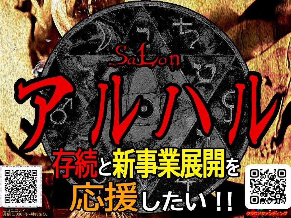 ※また、全リターン共通として、Salonアルハルにて使用できる。初めての方でも入館できる招待券及び割引券をおまけとして同封またはメールさせていただきます。割引券は、通常チャージ新規料金2,000円 → 1,000円とさせていただきます。特別会員の方は更にサービス特典がございます。[有効期限]2021年9月1日〜2022年2月28日迄。※有効期限は資金決済法に基づき、6ヶ月以内とになります。