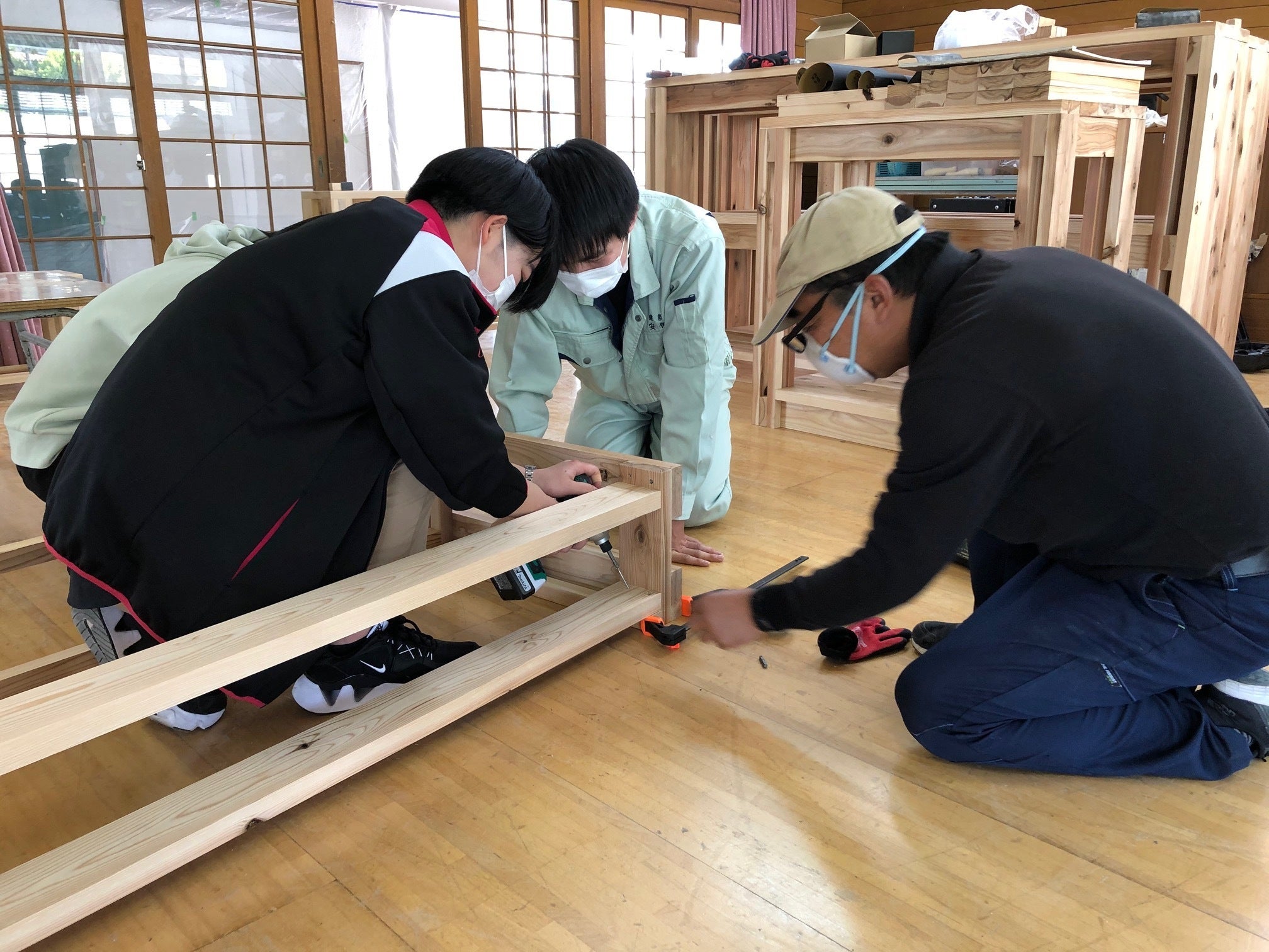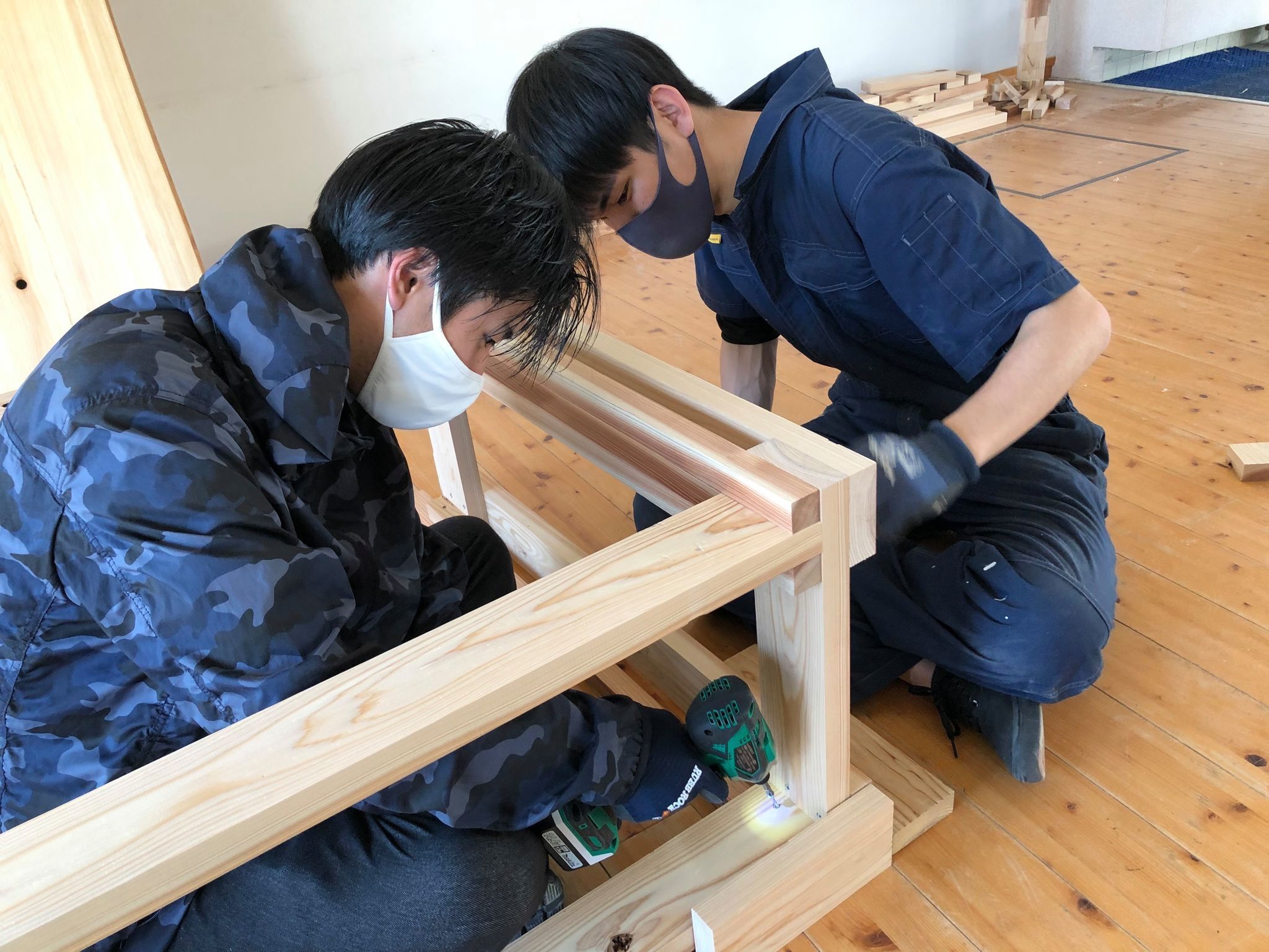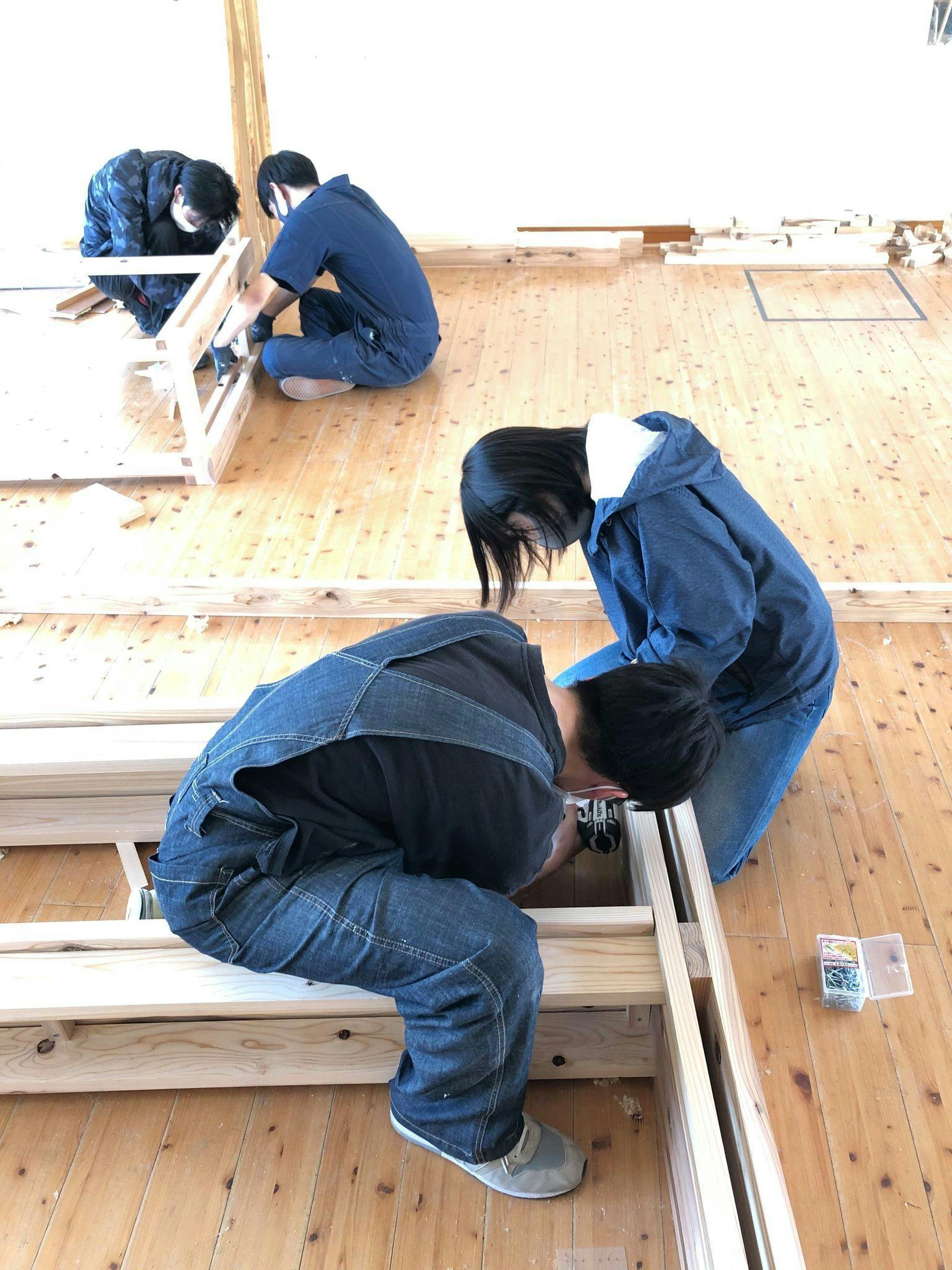 また、今回のプロジェクトは岡山県立大学畠研究室の学生のみなさんにご協力いただき、今回の建築デザインや改修に参画してくれました。今も県立大学生と一緒に施工にあたっています.。