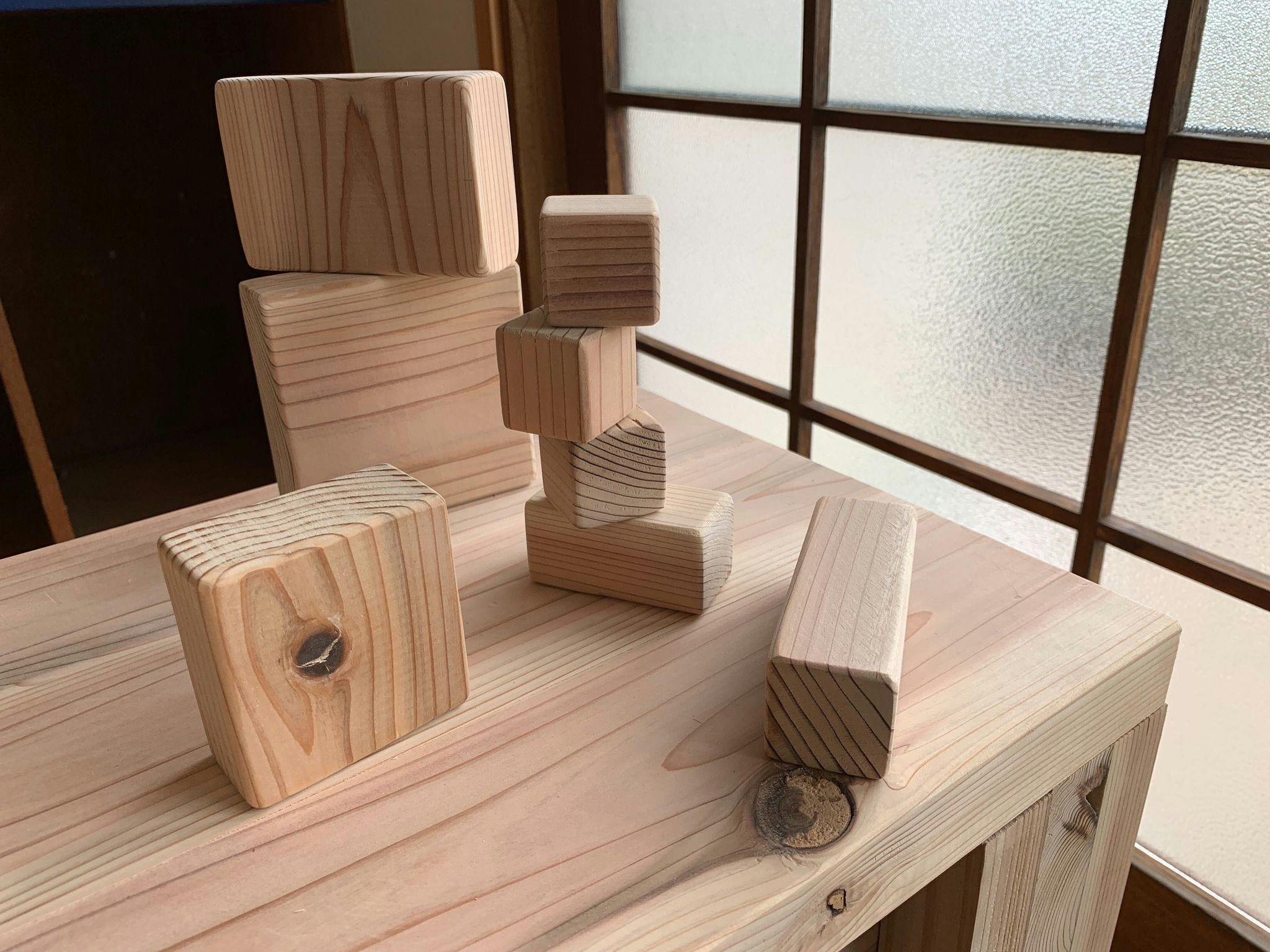 DIYによる木製什器制作の過程で出た端材を活用した「Sense tsuyamaオリジナル積み木」をお届けします。子どものおもちゃやインテリアとしてもご活用いただけます