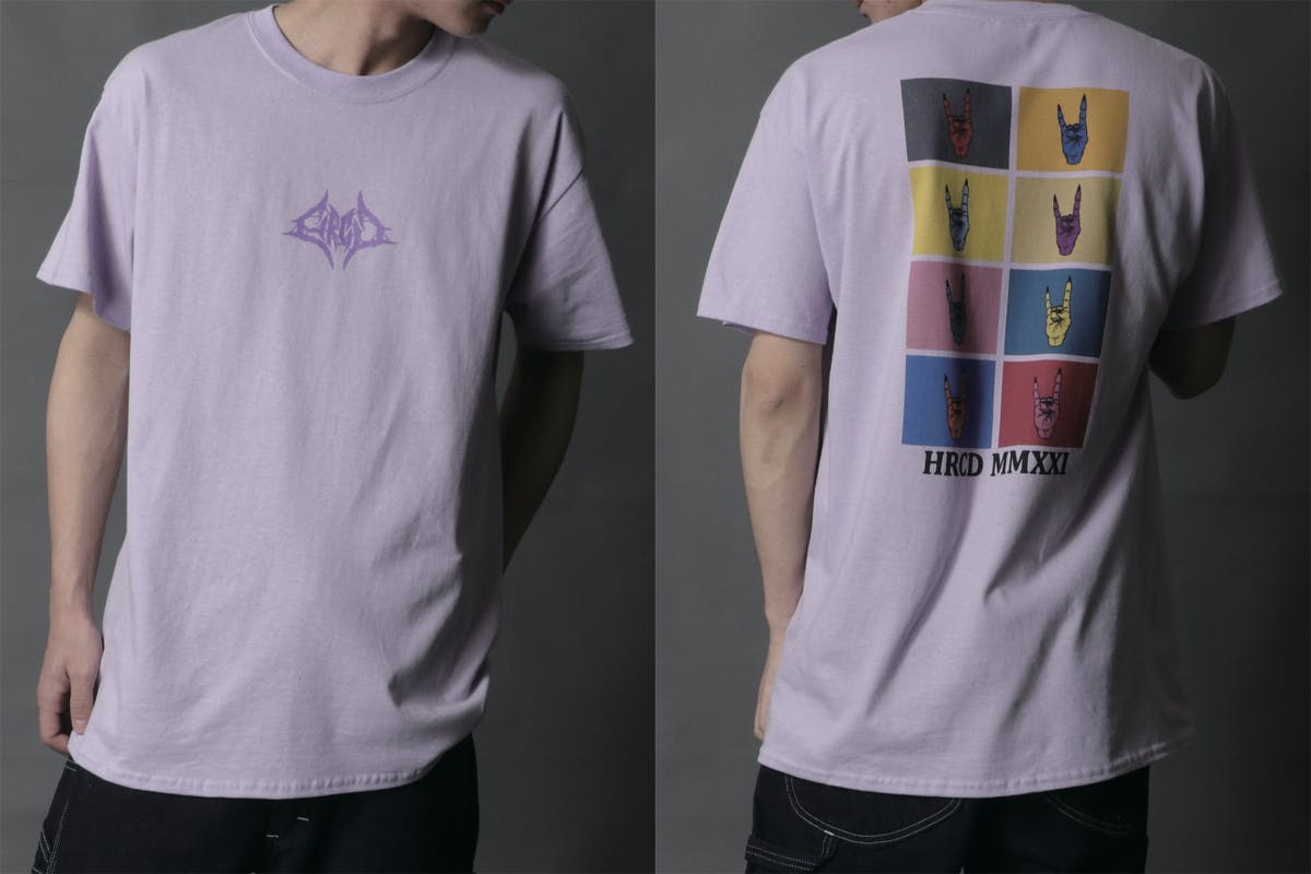 バックプリントには、ロック、メタル好きにはお馴染みのメロイックサインをモチーフに、90年代のPOPARTのポスターを思わせるデザインをプリント。