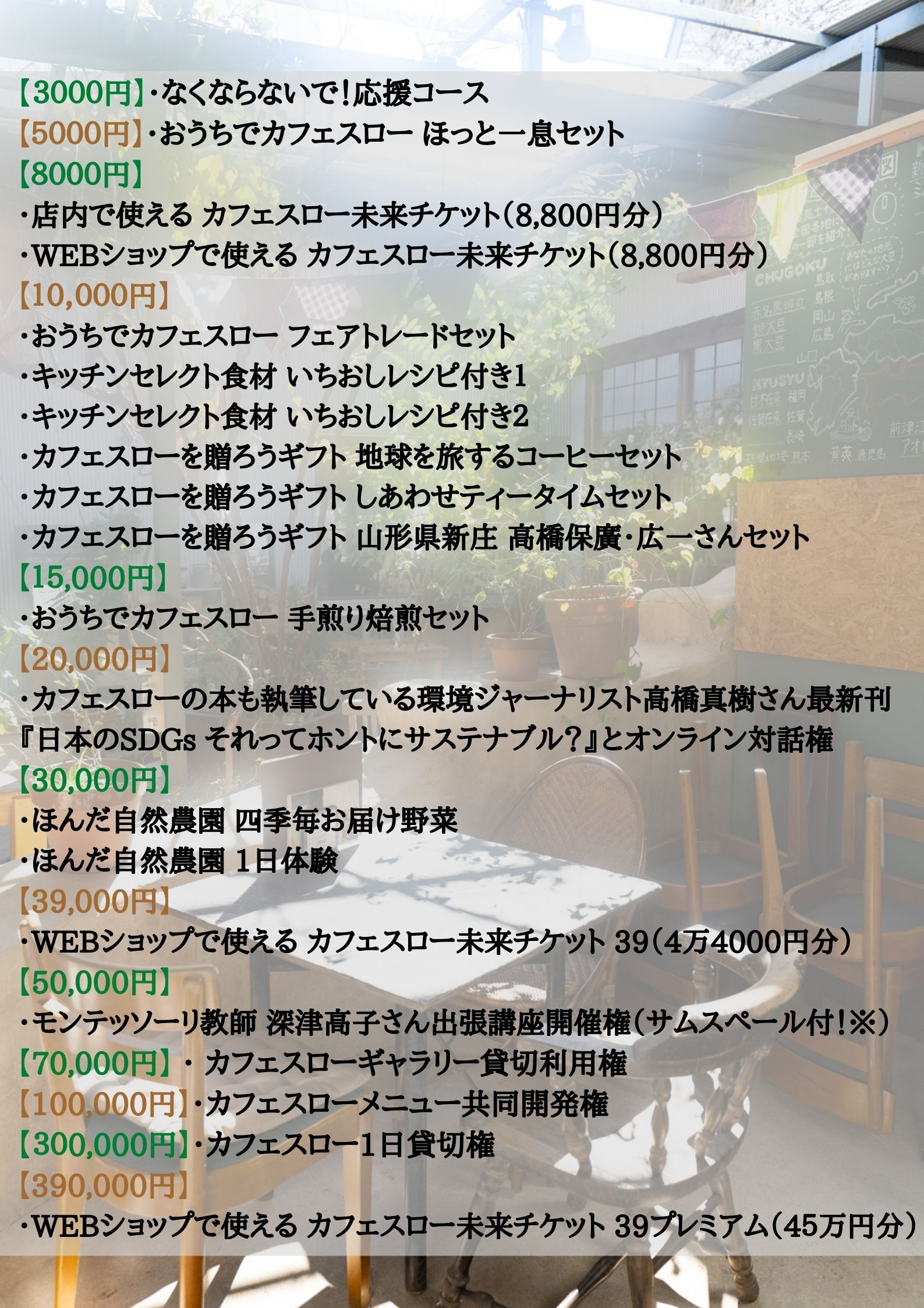 今回のクラウドファンディングはカフェスローの財政危機を乗り越えるために、スローパートナー3名とカフェスローが共同で行うプロジェクトです。