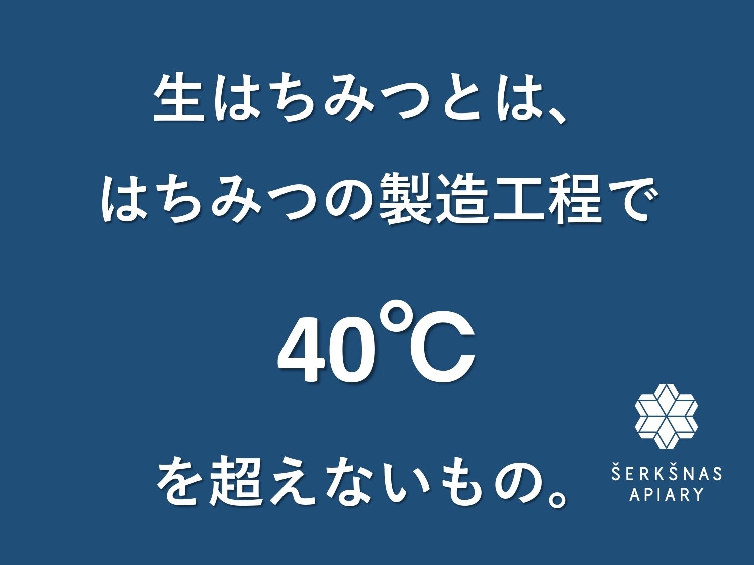 蜂の巣の中の温度は約32℃~36℃に保たれています。そのことから、シェルクシュナス養蜂場では、自然に近くベストな状態ではちみつを製品化するのは、40℃以下の温度が望ましいと結論付けているからです。
