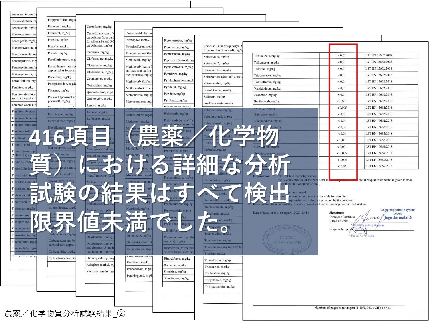 ※リトアニア国立食品獣医リスク分析研究所(National Food and Veterinary Risk Assessment Institute)は、日本の厚生労働省が食品等の検査をするため公的に認めているリトアニア国内の分析機関です。