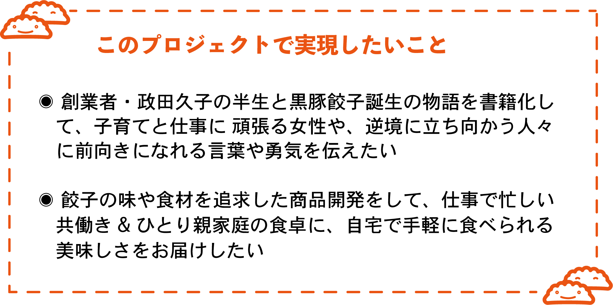 そして、餃子の美味しさやその奥に隠された思いを少しでも知って頂ければ幸いです。どうぞ、ご支援よろしくお願いいたします。