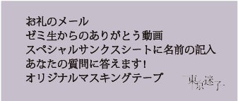 また、アンケートも同封しておりますのでゼミ生に感想や叱咤激励などをお送り頂けますと幸いです。