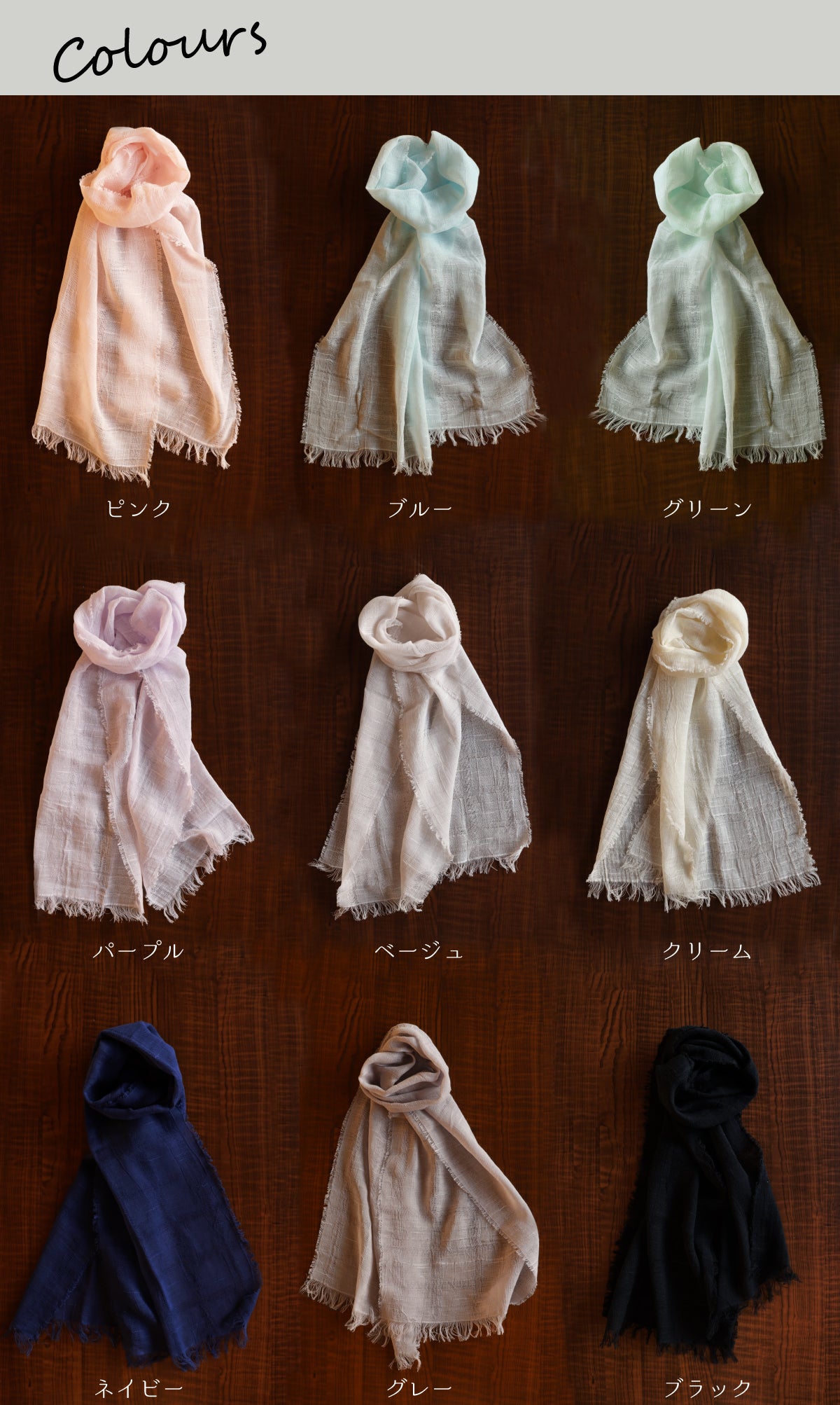 天然素材の綿100%マフラーで今年の春夏をよりおしゃれに、楽しく、そして快適に過ごしていただければ幸いです。