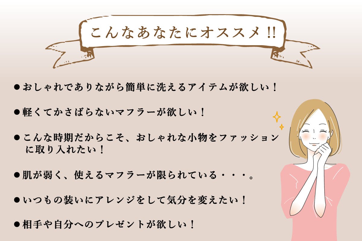 そんな時期だからこそ、多種多様なガーゼ織りを得意とするタオルメーカーの技術で、美しい色に染めたガーゼのマフラーを織り上げました。豊かな色彩のマフラーで女性がお化粧やお洋服を楽しむように、外での装いに1アレンジ加えて楽しめる、当社自信作をお届けさせてもらえませんか?