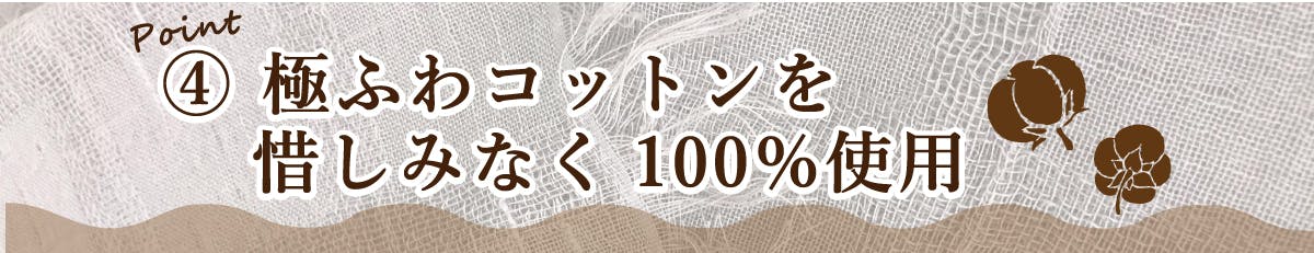 100%綿糸で織り上げた天然素材!綿の特性、機能性を最大限に活用し、使い心地が体になじみ、ずっとつけていたくなるようなガーゼアイテムが完成しました。天然繊維、コットンが生み出した逸品をお楽しみください。