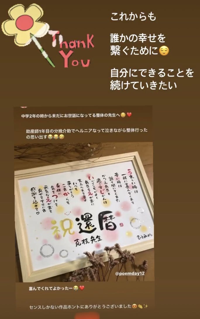 2016年大切な人に自分の気持ちを伝える方法がないかと考え、筆文字の温かさを知り、生きてる中で何度も呼ばれる生まれて初めての贈り物、「名前」を使ってポエムを描く「筆文字ポエム」を始めました。