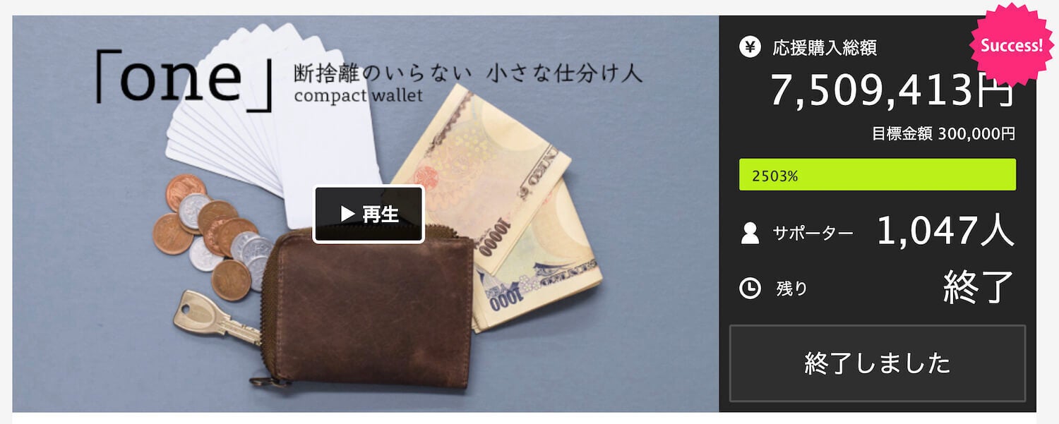そして「TIDY one」は、初回のクラウドファンディングでの実績が 2,503% という大きな記録を達成した革財布です。