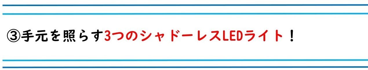暗いガレージの中や、手で隠れてしまう暗い場所も、ライトを照らし安全に作業ができます。