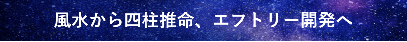 ①宿命を知る、②運命を知る、のは人の体の環境調整、すなわち四柱推命。③家の環境を整えるのが、風水です。エフトリーはその、①宿命を知る、②運命を知る、の2点を簡単にできるようにした、WEBアプリです。