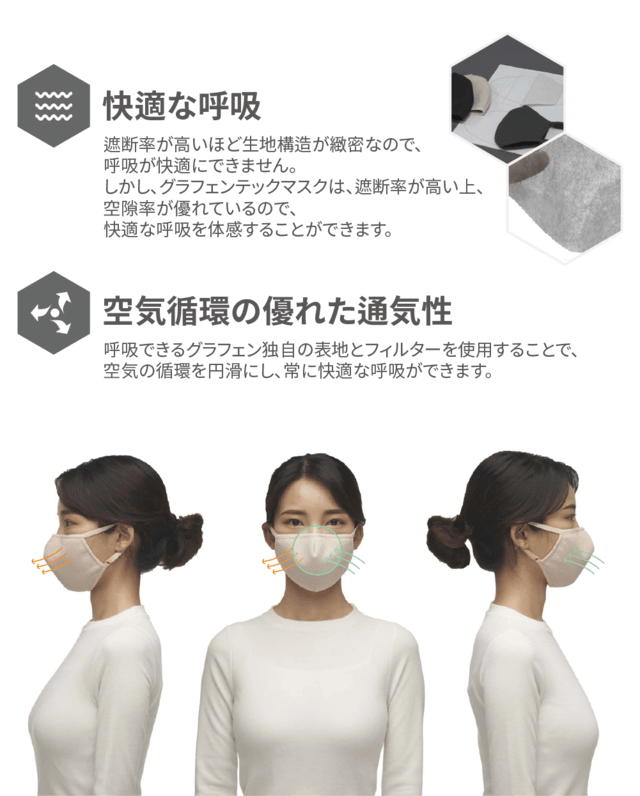 一日中使っても快適で安心できるグラフェンテックスマスク