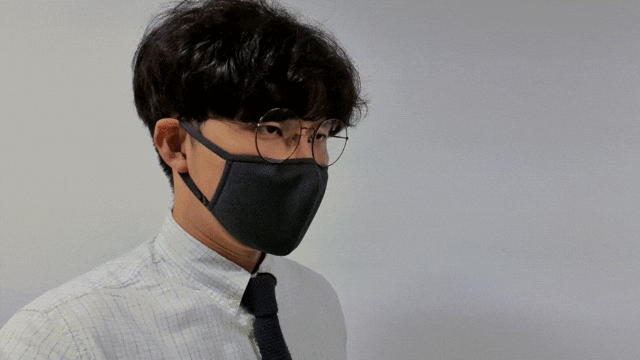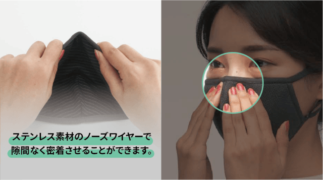 グラフェンテックスマスクは、花の部分に密着ノーズワイヤーを付けて、外部からの空気侵入や内部の息が上に上がらないようにしてくれるので、メガネが曇りにくい構造になっています。
