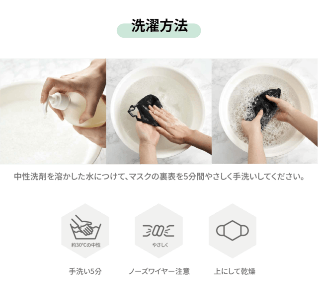 A:1. G2グラフェンマスクを中性洗剤を溶かした水の中で、やさしく手でもみながら洗ってください。