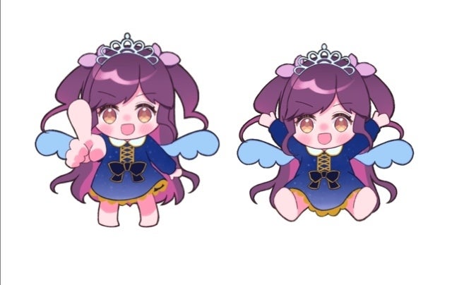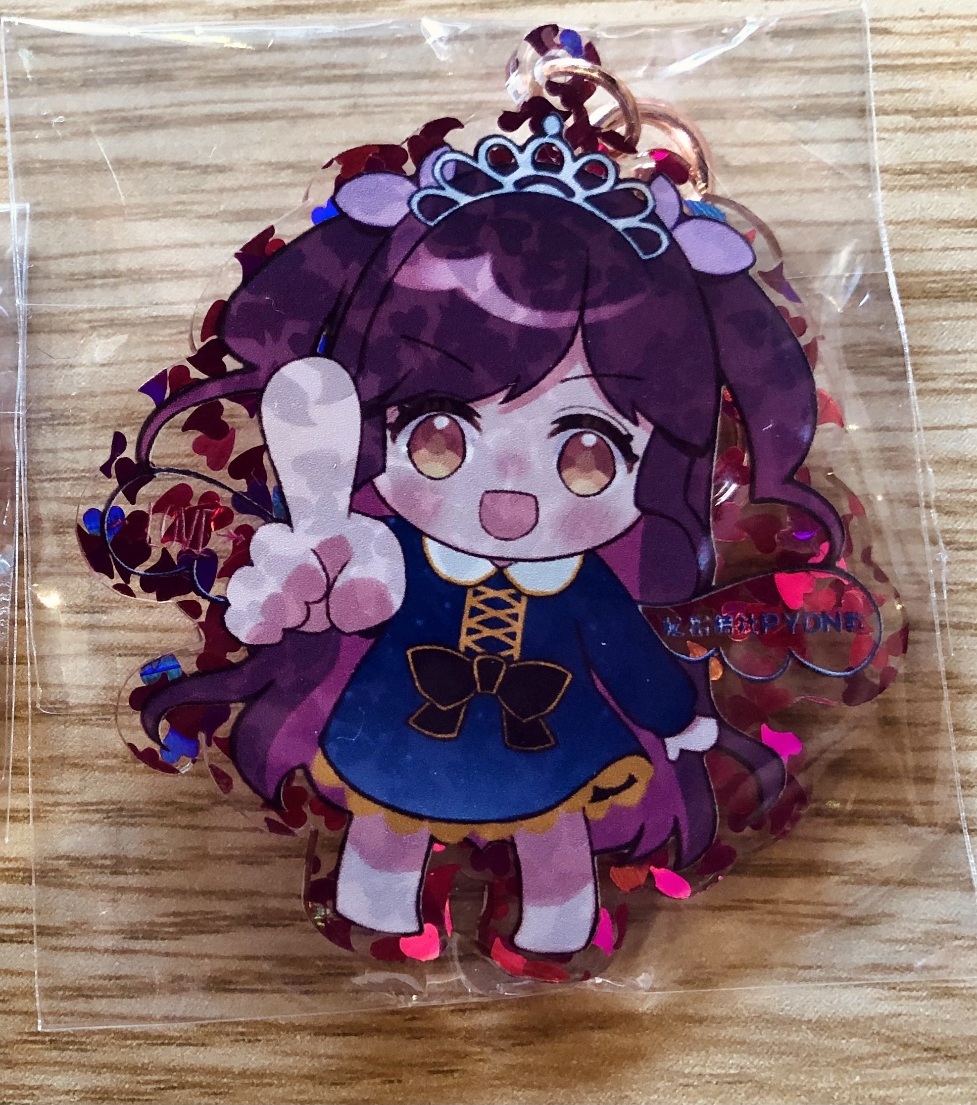 リターンの缶バッジ、アクリルキーホルダー等に使用するイラストのデザイン、アクリルキーホルダーの実物が出来上がったので公開します!!