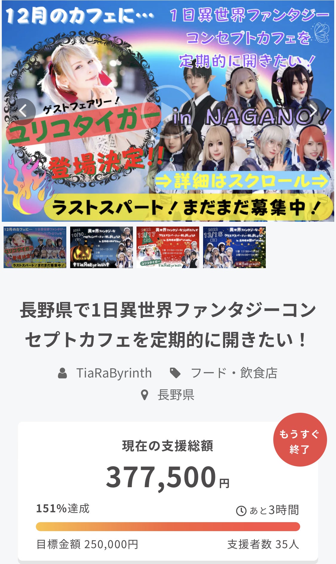 目標金額に近づけるように私も頑張るので、皆さんにもご協力頂けると助かりますo(^o^)o