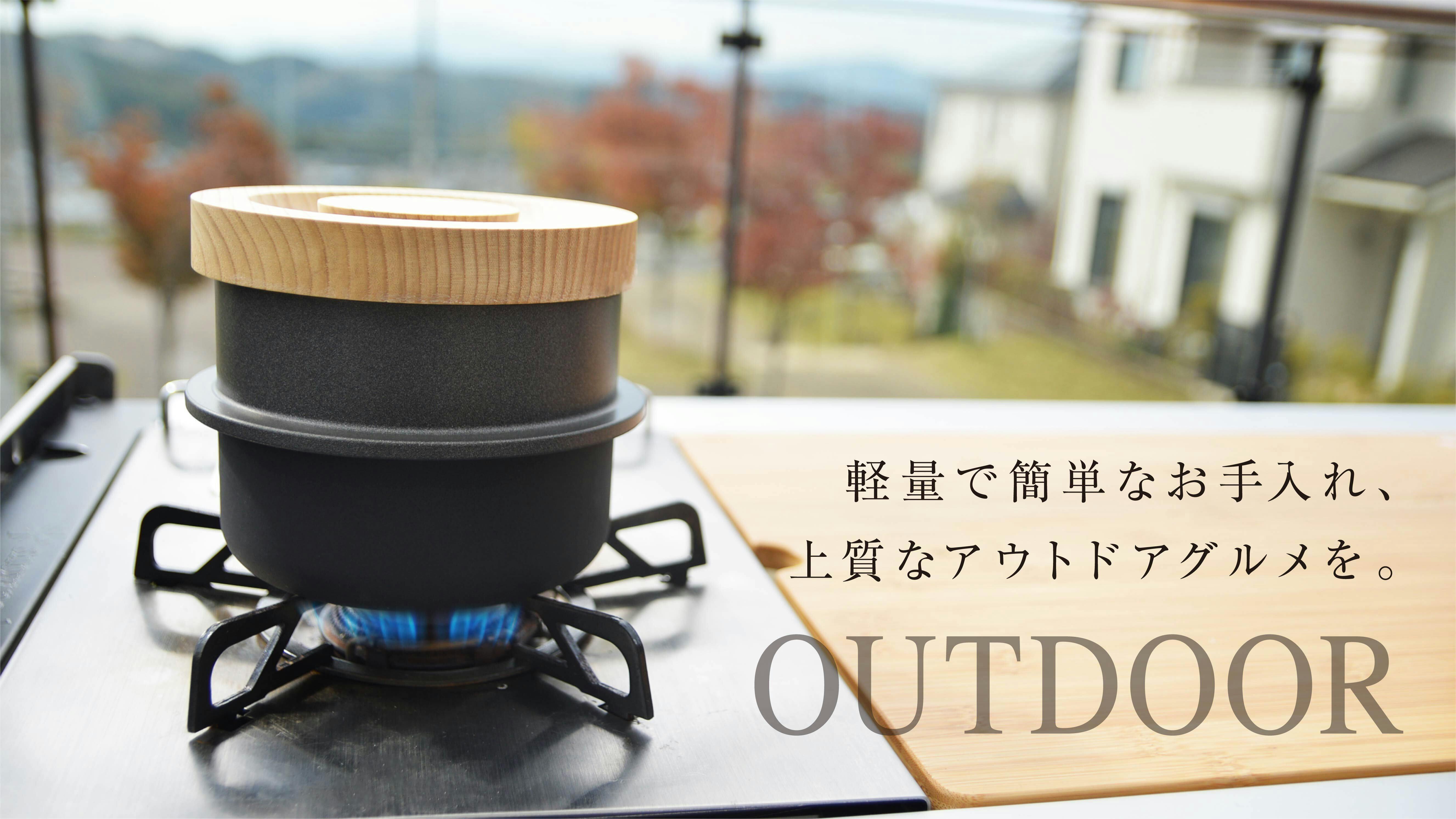 その圧倒的な熱伝導率により、固形燃料の少ない火力と時間でもお米が炊けます。