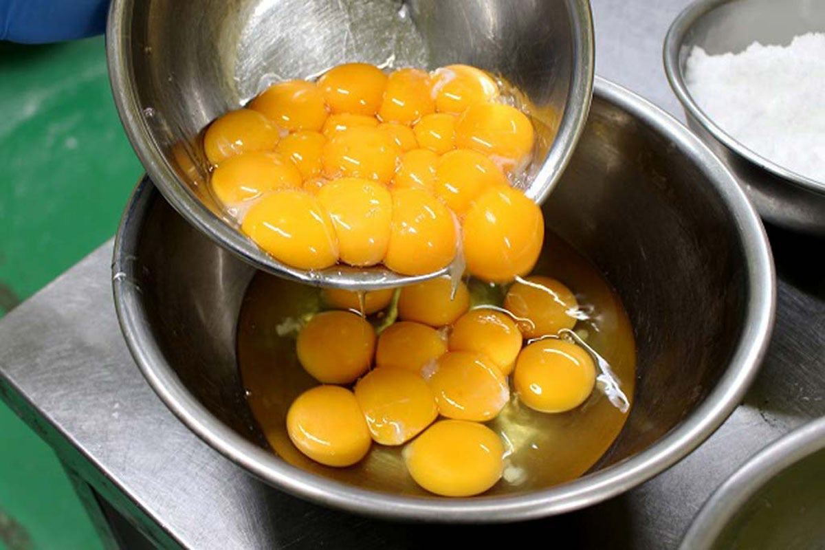 鶏の飼料に乳酸菌や納豆に入っている枯草菌、各種ミネラル・ビタミン等、体に良いものだけを使用することで卵の生臭さを消しているため、生まれた卵は卵黄の甘味が強くなり、ケーキやパンに最適です。