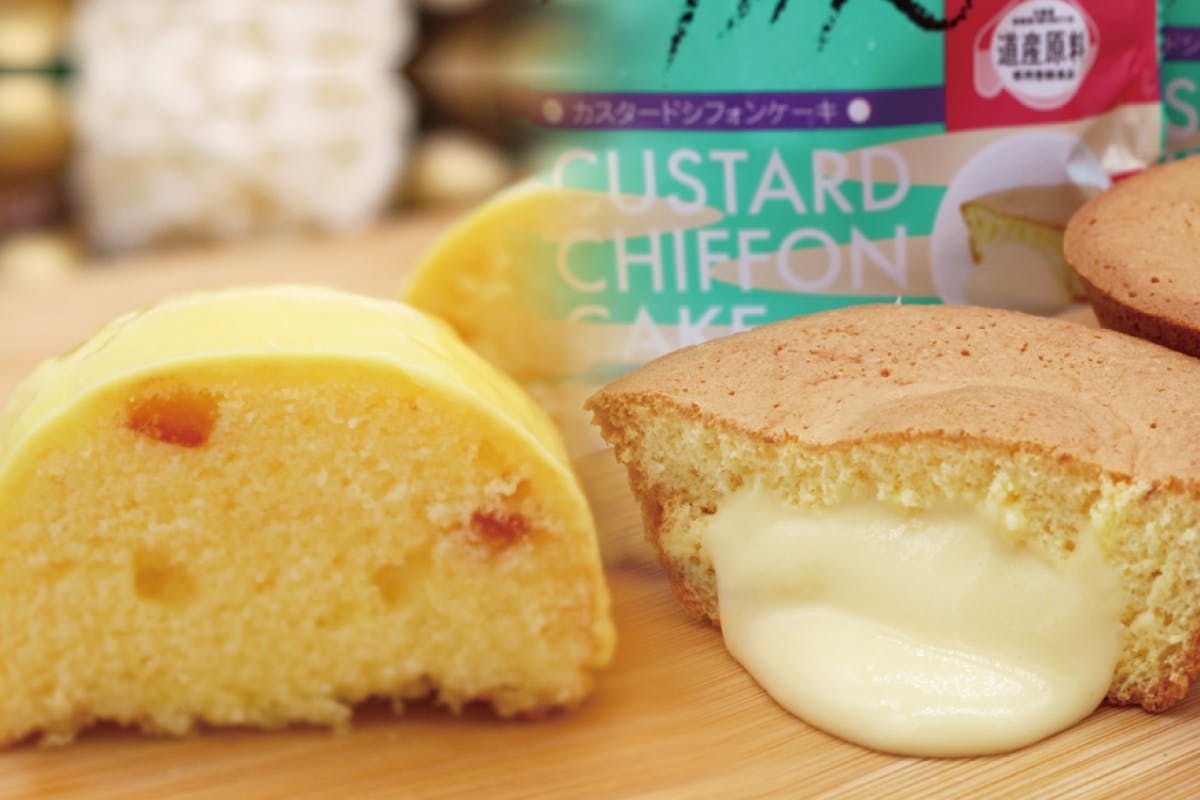 ふわふわ香ばしく焼き上げられたシフォン生地に生クリームとカスタードクリームをほどよくブレンドした濃厚クリームがたっぷり入っています。ぱくっと一口ほおばればトロッと上品でコクがあるクリームがとろけだします。