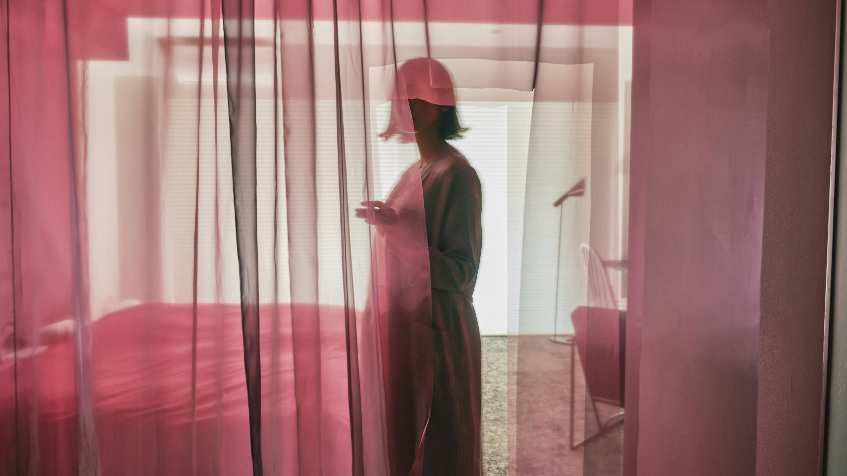 赤く塗られた壁面に光のグラデーションが美しい3階の様子