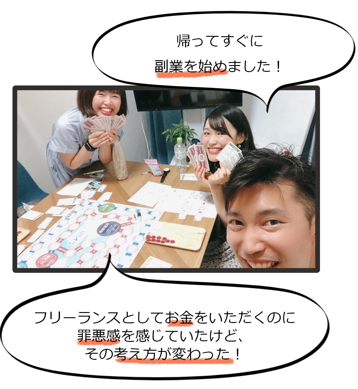 仕事のパートナーと行うと、相手のお金の使い方、いざという時の判断基準が分かり、チームビルディングにも活かせます。