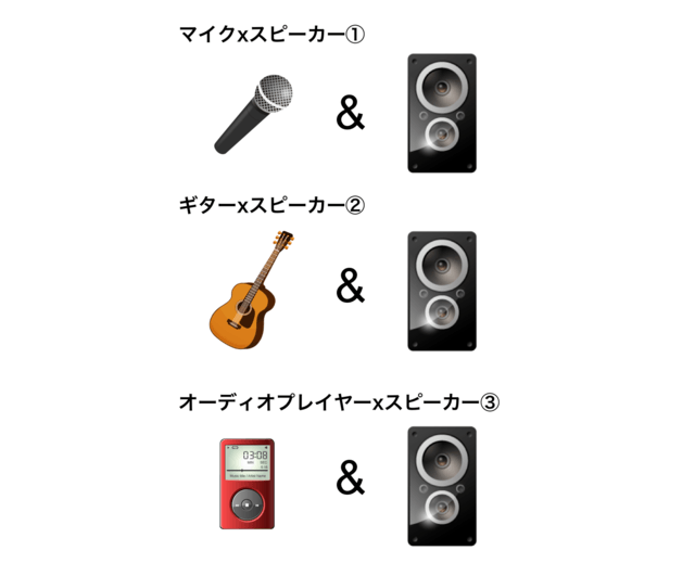 このように各機材に一つずつ出力先のスピーカーが必要になります。