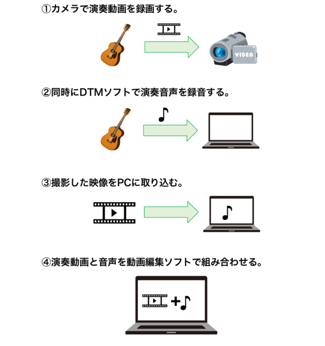 これだけでYouTubeで投稿されているような演奏動画を作ることができます。