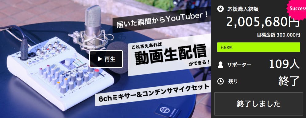 さらに、プロジェクト終了時には目標金額の668%ものご支援をいただきました!