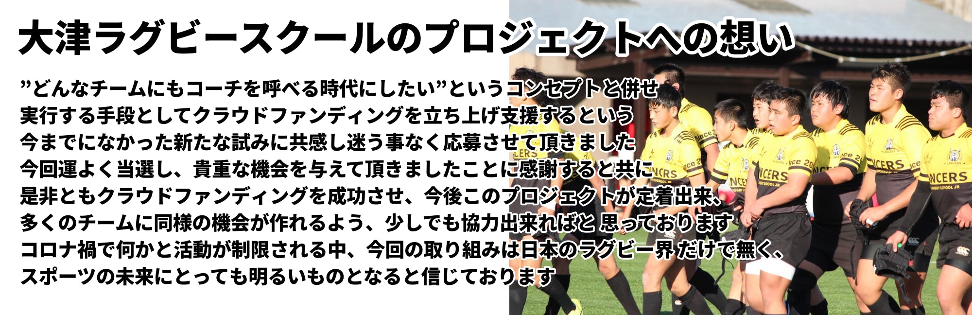 応募して頂いたラグビーチームの元に森田・森崎がそれぞれ出向き2時間のコーチングを行う。コーチ代などの経費は全てクラウドファンディングで集める為、チーム側は0円でコーチングを受ける事が出来る。尚、目標金額に達しなかった場合はプロジェクトを中止とする。