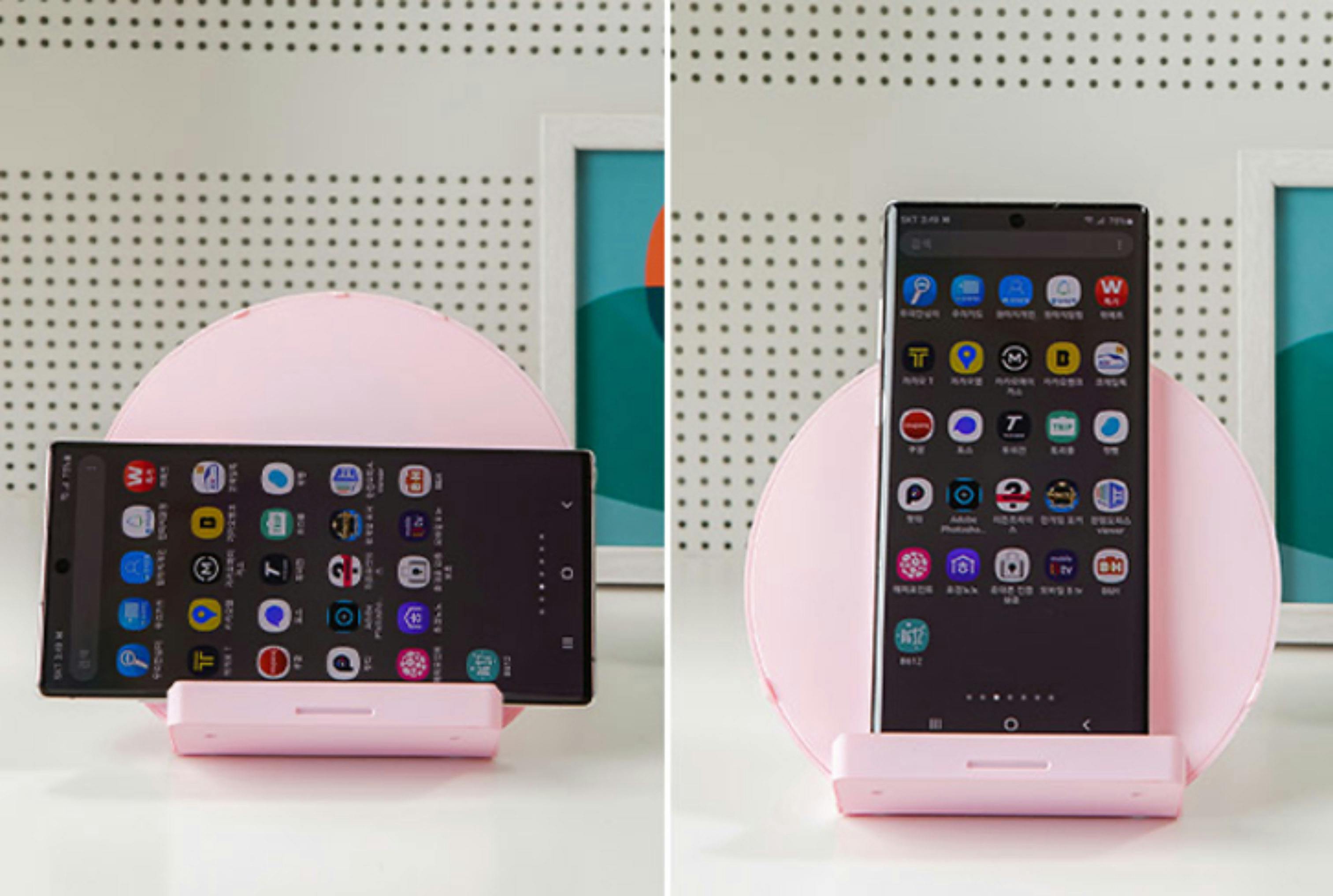 スマートフォンの充電は引き続き行われます。無線充電はタテ、ヨコ、どちらでも可能です。