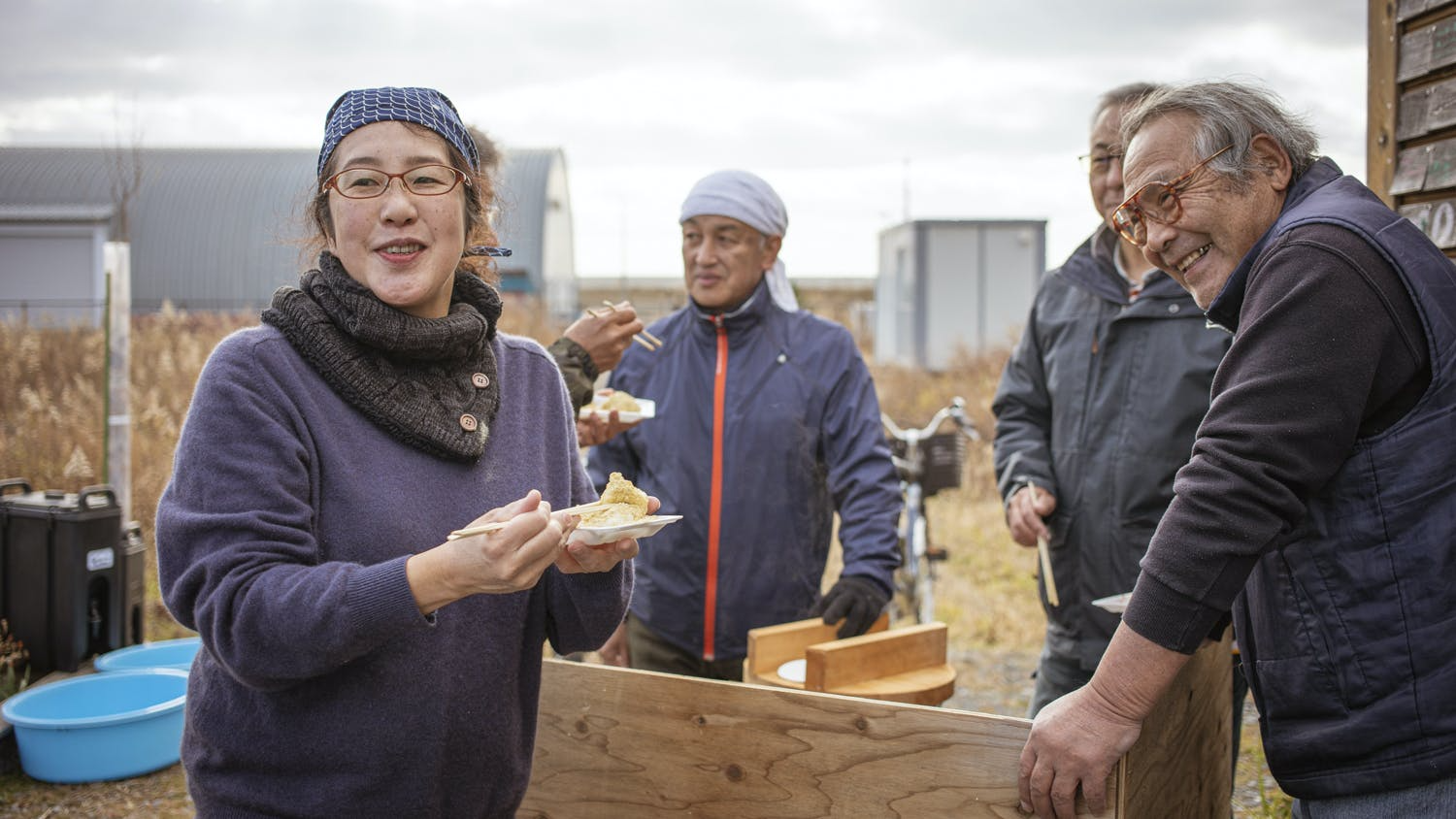 私は、宮城県石巻市の渡波(わたのは)地区にあった避難所のメンバーが立ち上げた任意団体「チームわたほい」のお手伝いをしています。かつて我々の家があった場所にはコンテナハウスと木製の遊具を設置してもらい、避難所時代の仲間や地域の人と一緒に餅つきなどの集まりを催してきました。