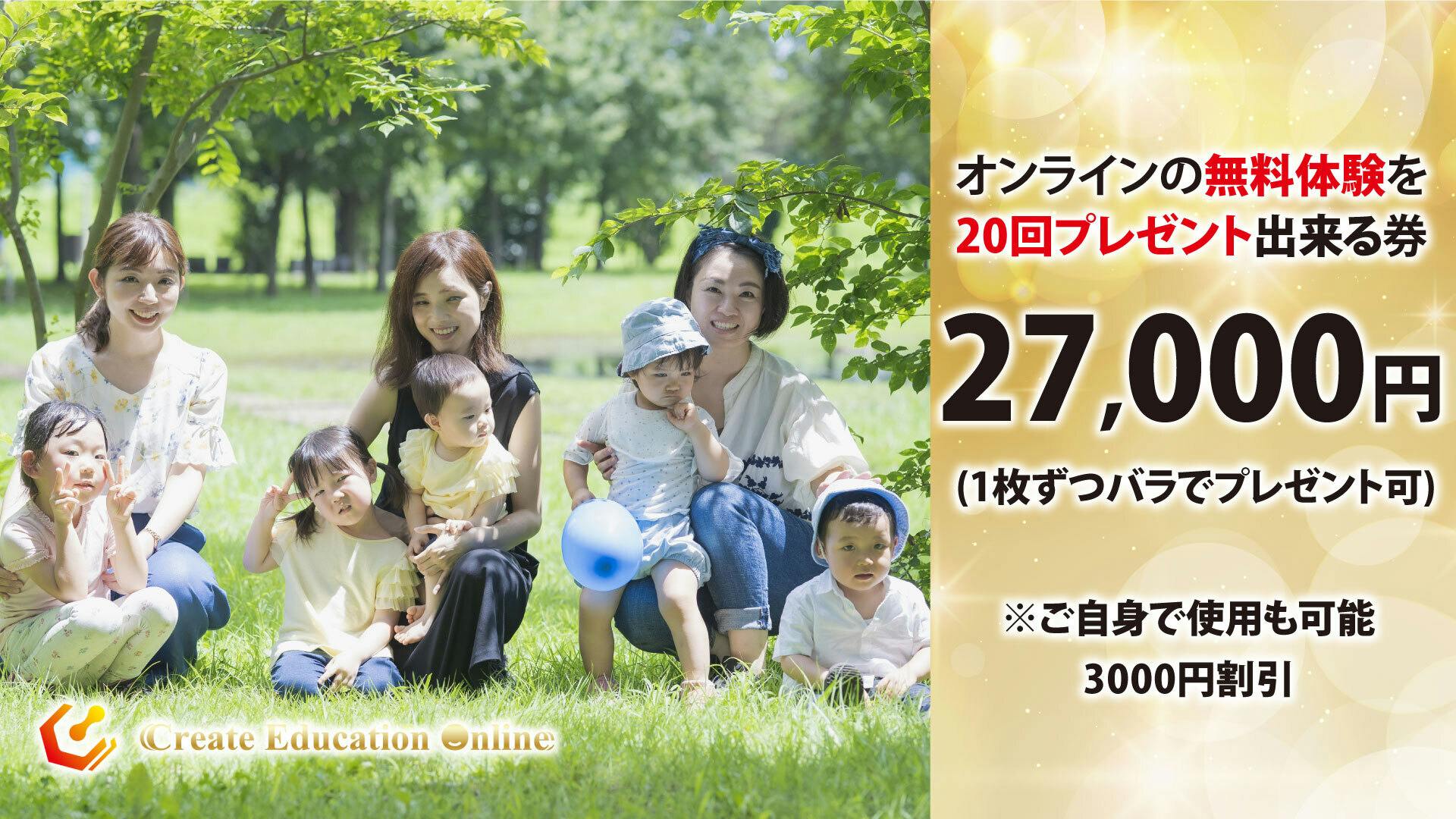 オンラインの無料体験を20回プレゼントできる券(1回60分です)