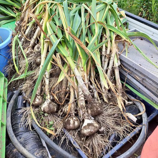 2021/05/19 15:54バクチャー畑のニンニクが収穫時期を迎えました。無肥料とは思えない球の大きさに仕上がっております。天候次第となりますが、収穫したもののうち、Lサイズ以上(L、2L、それ以上)の球を無選別で梱包し、支援者の方々に順次発送させて頂きます。今しか味わえない新にんにく(生にんにく)を是非お楽しみ下さい。 もっと見る