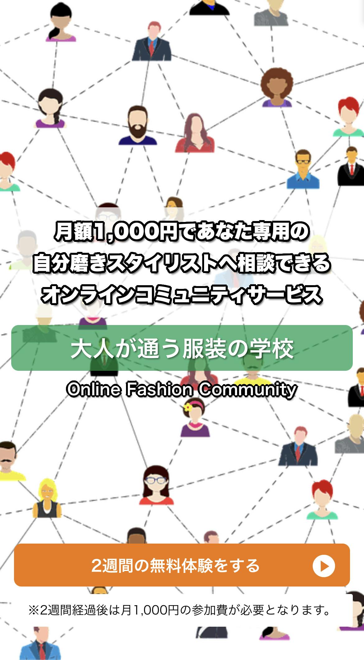 自分の印象や服装に自信が持てない方、外見内面共にもっと自分磨きをしたいと思っている男女に向けての、月額1,000円のオンラインコミュニティです。