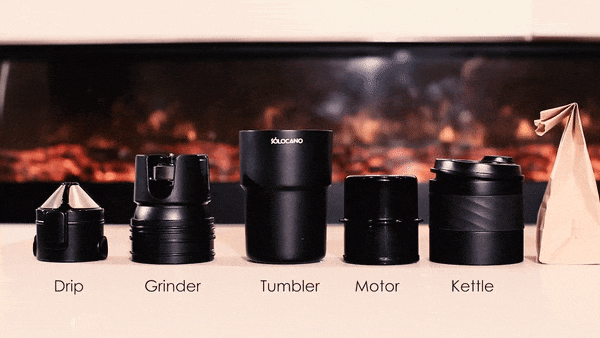 SOLOCANOx3個(タンブラー、グラインダー、ドリッパー、ケトル、フィルター、モーター、収納ケース、USBケーブル、はけ、スプーン、日本語説明書 各3)