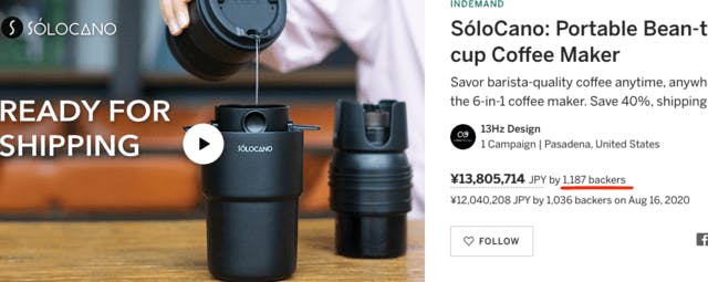 SóloCanoを海外のクラウドファンディングサイトで見つけた時に一目ぼれして何とか日本で販売したいと思い、何度も何度もメーカーとやりとりをして日本独占販売権を獲得することができました。この商品はボタン一つでいつでもどこでも挽きたてコーヒーが飲めてとても便利ですし、使い捨てフィルターがいらないのでエコで地球にやさしいし、長く使うとお財布にもやさしい商品です!海外・国内ですでに2,500人以上の方に支援を頂いております話題の商品です。すべてのコーヒー好きな方におススメ致します。