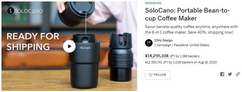 SóloCanoは海外クラウドファンディングで1,187人からの支援を受けた話題のポータブルコーヒーメーカーです。