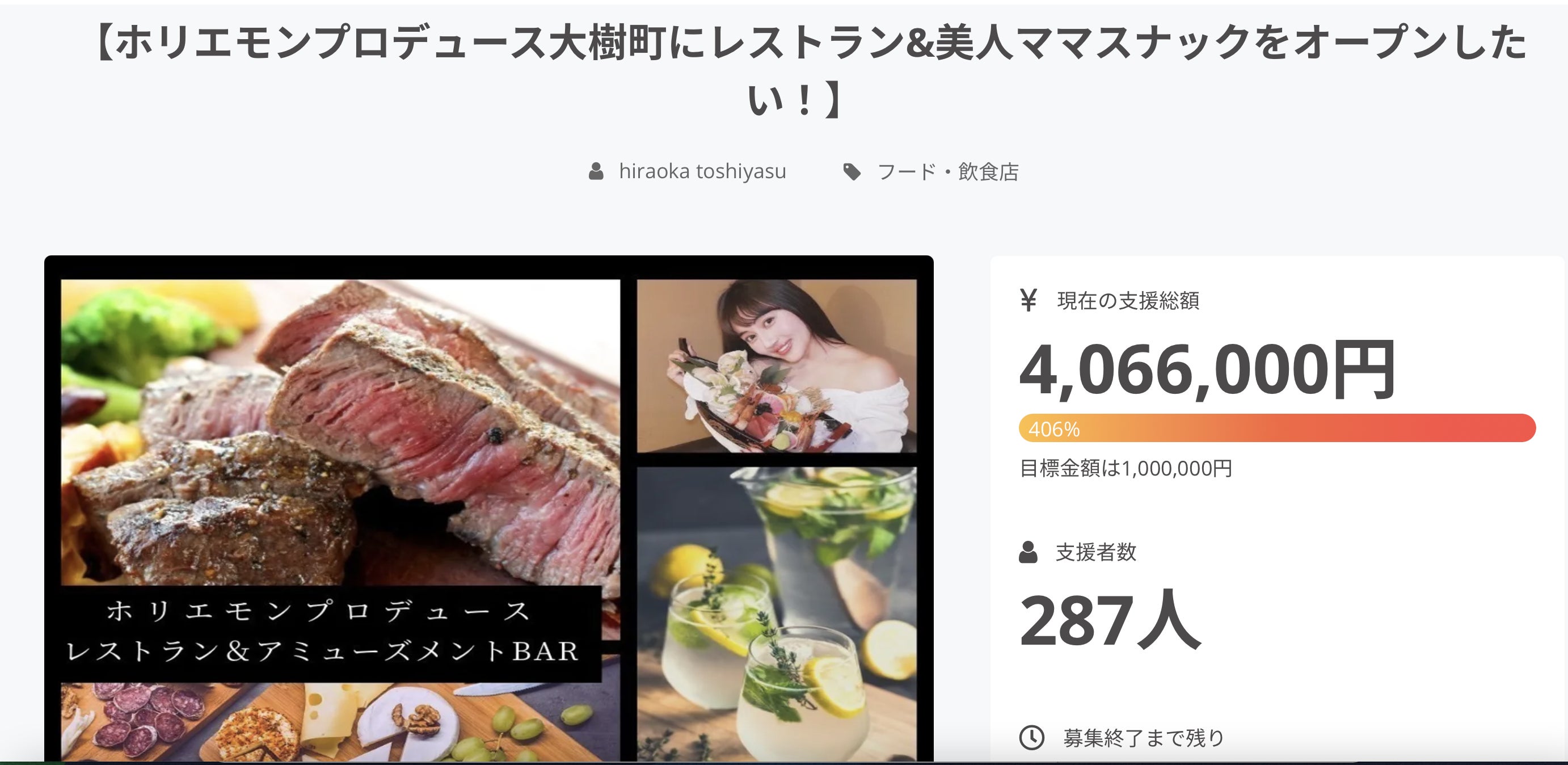前回のクラウドファンディングでは目標金額を大きく上回り総額4,066,000円もの支援が集まりました。