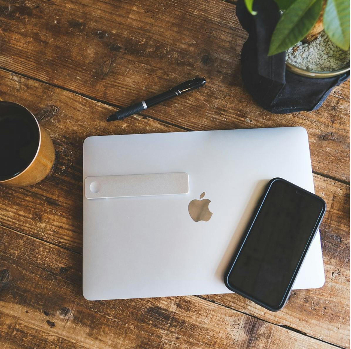 スマホを置かずに「浮かす」ので、デスク周りを広くすっきり使えます。作業効率をあげる上で、整理整頓された集中の途切れにくい環境づくりは欠かせません。