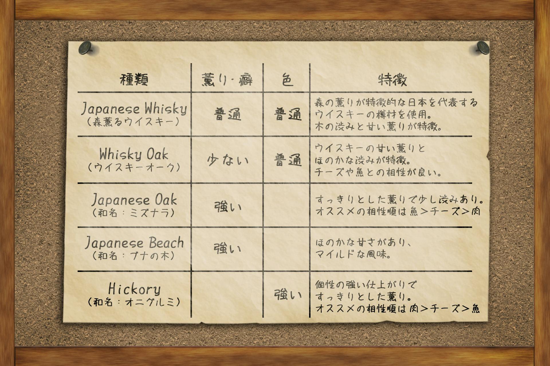 燻す時間、回数や馴染ませる時間等、色々と試してみてください。