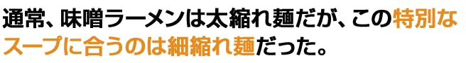 ●味噌ラーメンは太縮れ麺が常識(もっちり感と程よいスープの絡みが特徴)
