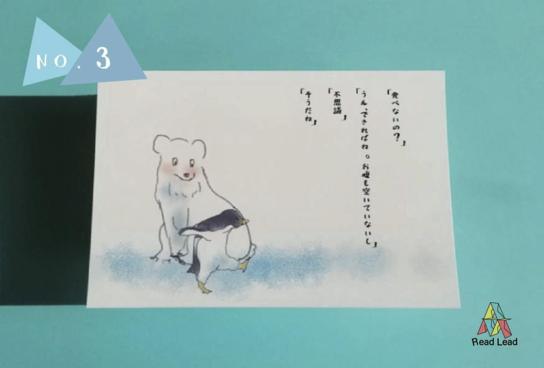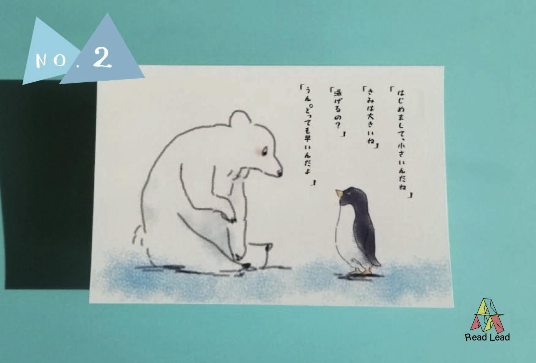 商品は表紙・本編合わせて全9ページの「シロクマとペンギン」と全8ページの「並ぶ子供たち」の2種類あります。