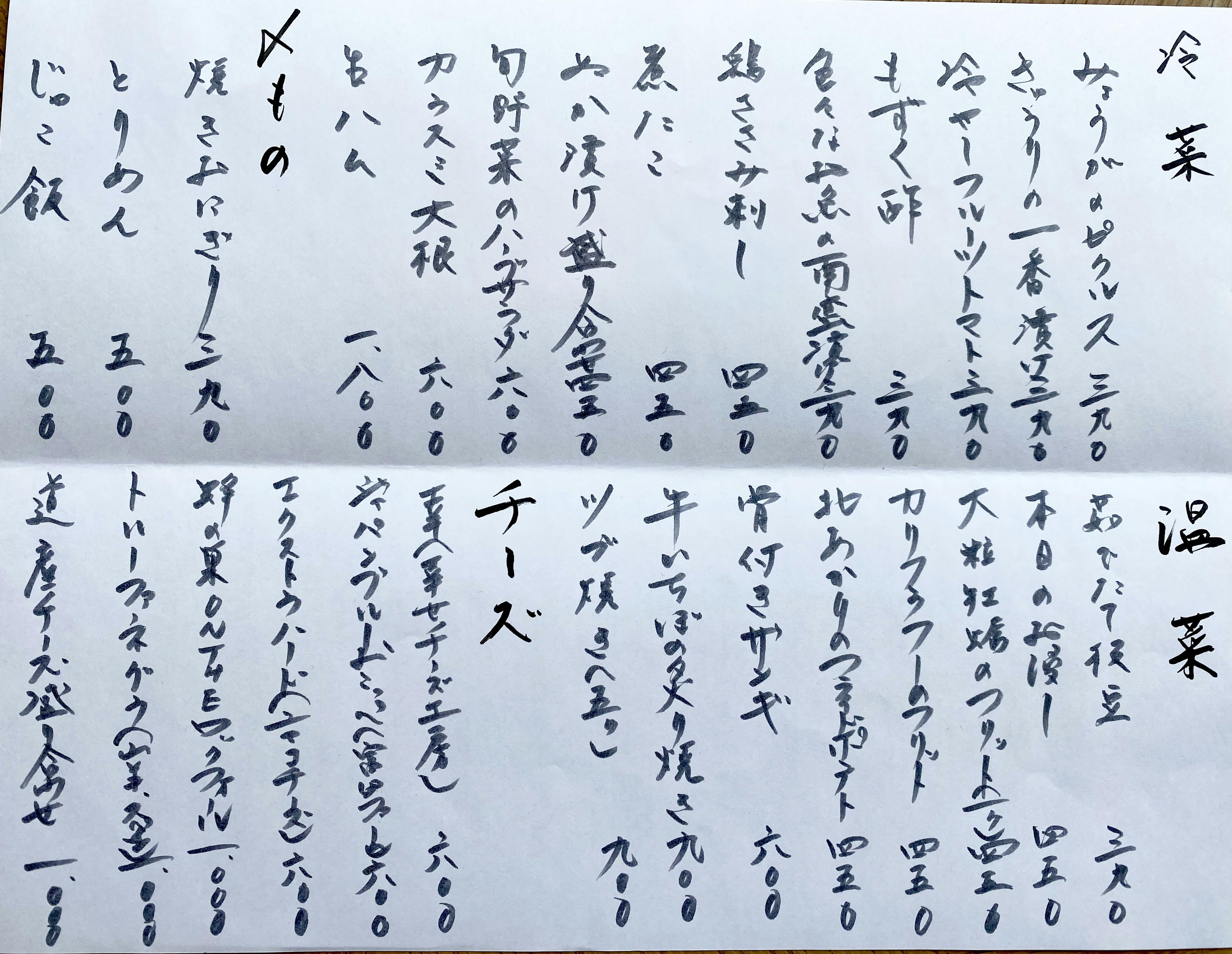 勿ノ論メニュー
